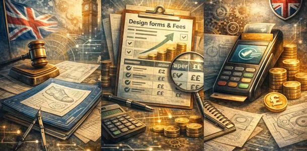 这类页面更新表面上只是“费率表改版”,但对以英国为重要市场的工业设计、消费品与硬件企业而言,其实直接关系到外观设计布局的组织方式。单件/多件结构会影响企业究竟是把系列设计一次性打包布局,还是先提交核心款、再按产品迭代节奏逐步补充;在线/纸件的费差,也会使提交渠道不再只是行政习惯问题,而变成预算、流程效率与内部协同的一部分。在 2026 年 4 月 1 日整体费率切换的背景下,这条资讯完全可以作为“英国外观设计保护成本”简报中的标准模块。